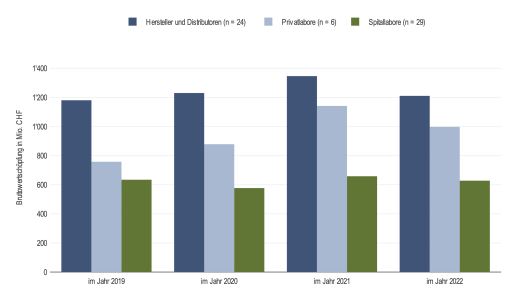 The Swiss in vitro diagnostics industry plays a central role in public health. Through precise and timely diagnoses, diseases can be detected early and effective treatments can be initiated. Based on a survey of hospital and private laboratories as well as manufacturers and distributors of in vitro diagnostics, Polynomics calculated the economic importance of the industry. With around 12,000 employees, the industry generated a gross value added of CHF 2.8 billion in 2022. The industry's contribution to coping with the Covid 19 pandemic is also reflected in the value added, which increased by around 17% in 2021 compared to the previous year and declined again in 2022. The vast majority of companies invest in personnel, capital and research and development. In this context, companies are challenged by the shortage of skilled workers, cost pressure in compulsory health insurance, tariffs and increasing regulation. Thanks to improved diagnostic accuracy, laboratory diagnostics contributes to reducing the social costs of diseases. It is also an important pillar in the fight against communicable diseases, as the tests for the Sars-CoV-2 virus have impressively shown in recent years.