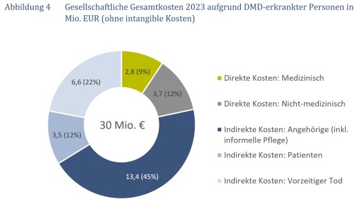 What are the social costs of DMD in Austria? For the first time, we deter-mined the direct, indirect and intangible costs for each of the four stages of the disease. Wherever possible, we referred to Austrian information on prices and quantities and alternatively used information from international literature or expert estimates.